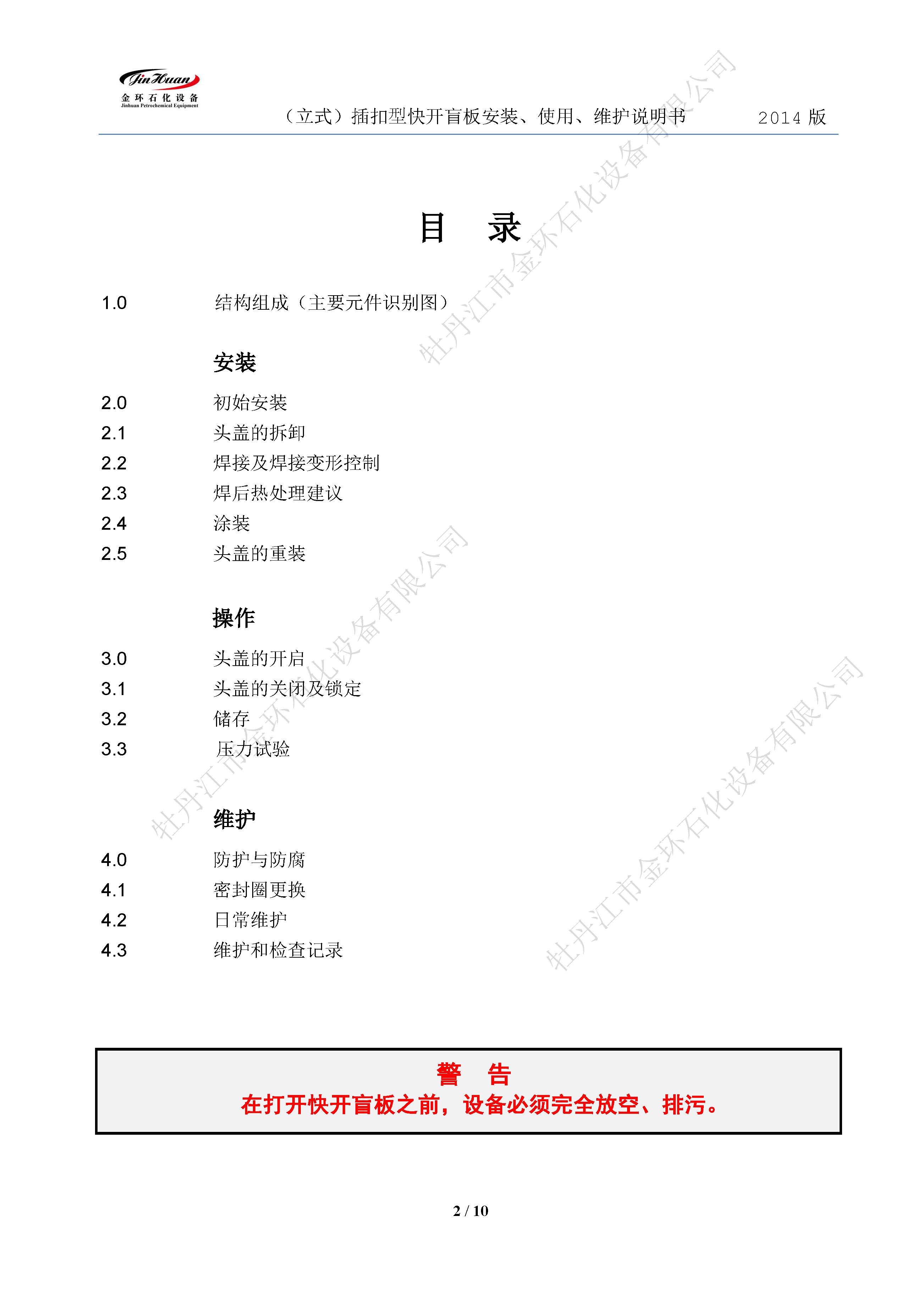 插扣立式快開盲板說明書