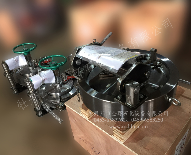 快開(kāi)盲板是用于壓力管道或壓力容器的圓形開(kāi)口上的一種機(jī)械裝置。一般由筒體法蘭、頭蓋、勾圈或卡箍、密封圈、安全聯(lián)鎖機(jī)構(gòu)、開(kāi)閉機(jī)構(gòu)、轉(zhuǎn)臂及短節(jié)(需要時(shí))等部件構(gòu)成。
